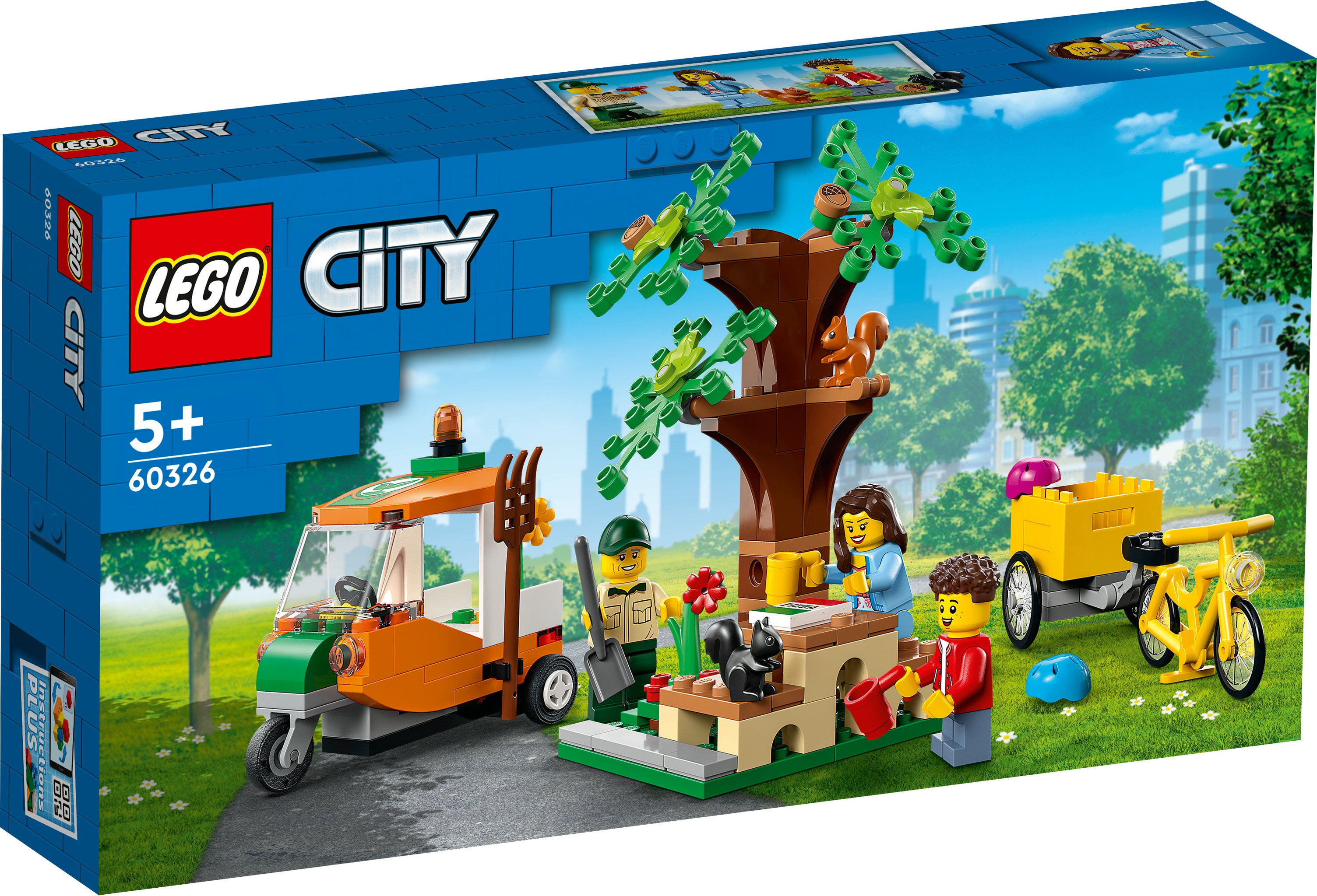 Das LEGO® City Bauset „Picknick im Park“ (60326) beinhaltet eine Parkkulisse mit Baum und Picknickbank sowie ein Fahrrad mit Anhänger. Ein Gärtner mit einem Dreirad-Transporter voller Werkzeug und Blumen arbeitet in dem Park, wo natürlich auch niedliche Eichhörnchen herumtollen! Wenn Kinder ihre LEGO City Modelle mit diesem Set ergänzen, können sie sich jeden Tag auf ein Sommerpicknick freuen.