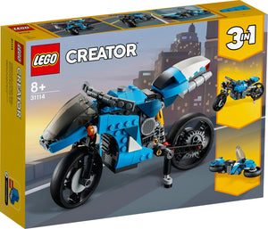 Dieses LEGO® Creator 3-in-1-Spielset bietet 3 verschiedene Bau- und Spielerlebnisse. Kinder können das moderne Geländemotorrad nicht nur in eine Strassenmaschine mit Ständer oder ein futuristisches Hoverbike umbauen, sondern auch ein fantasievolles neues Modell erschaffen.