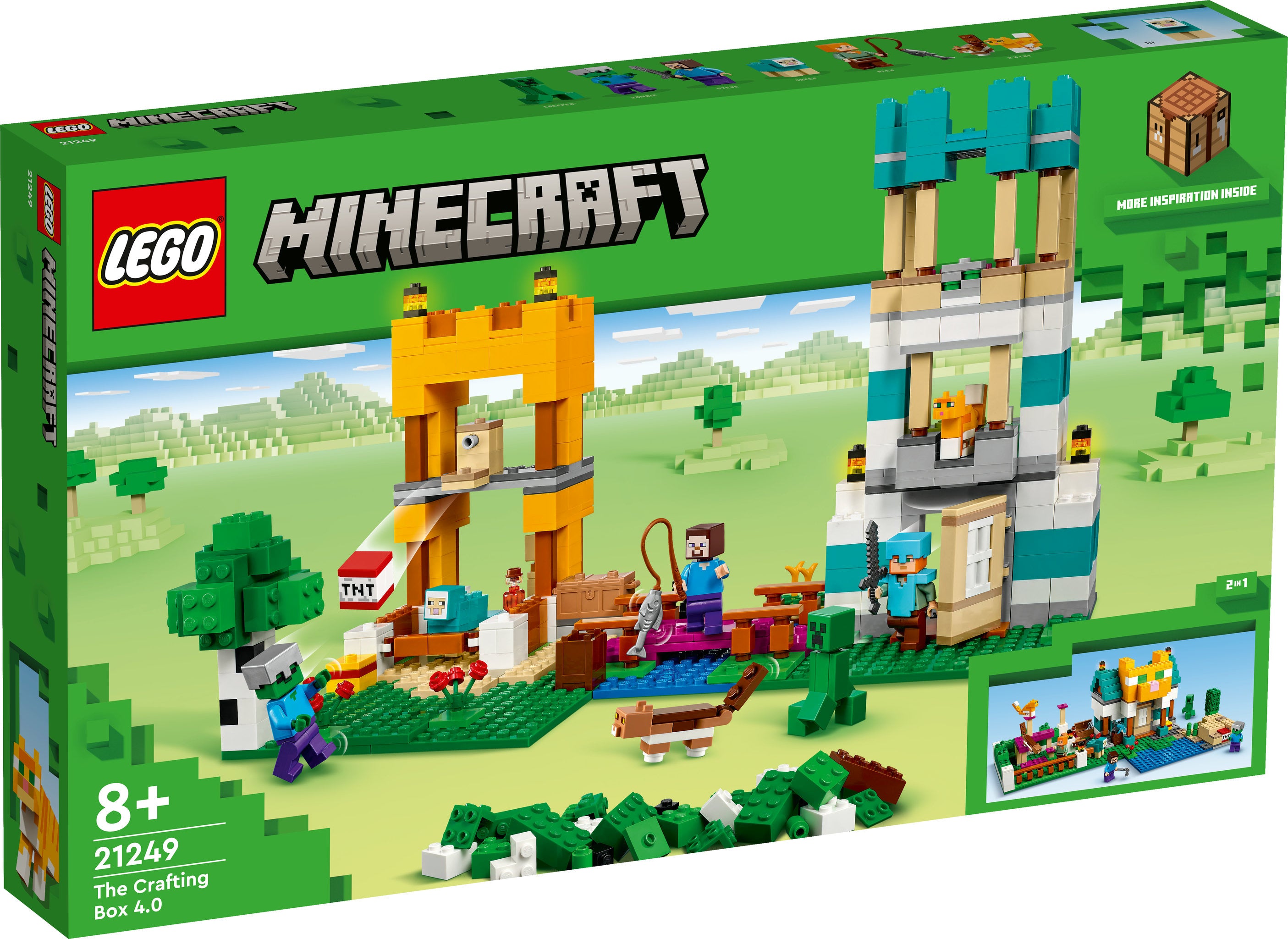 LEGO® Minecraft® Die Crafting Box 4.0 (21249) bietet Minecraft Spielerinnen und Spielern ab 8 Jahren gleich 2 herausragende Spielsets für ein besonders kreatives Bau- und Spielerlebnis.