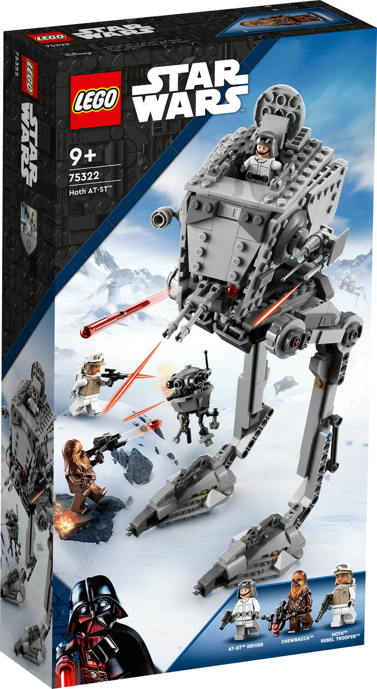 Zum allerersten Mal wurde der AT-ST aus der Schlacht auf Hoth mit LEGO® Steinen nachgebildet. Kinder werden mit dem Set „AT-ST auf Hoth“ (75322) gerne die spannenden Szenen aus Star Wars: Das Imperium schlägt zurück nachstellen. Eine Luke und das Dach lassen sich aufklappen, um Zugang zum Cockpit zu erhalten. Ausserdem verfügt das Modell über einen schwenkbaren Kopf (mit Drehrad), 2 Shooter und bewegliche Beine. Dieses Bauspielzeug ist ein cooles Geschenk für junge Trendsetter ab 9 Jahren. Für kreative Rollenspiele beinhaltet das Set auch 3 LEGO Star Wars™ Minifiguren, unter anderem Chewbacca im Schneetarnanzug, sowie als zusätzliche LEGO Figur einen imperialen Sondendroiden.
